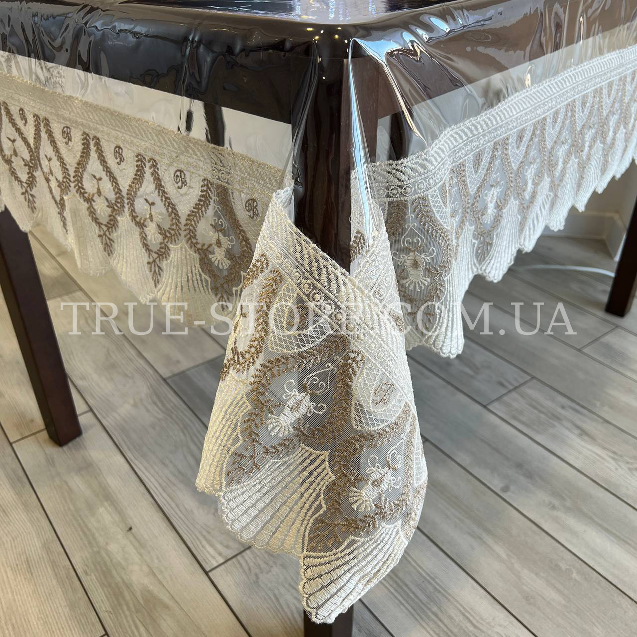 Скатерть силиконовая с кружевом император Белая/Капучино (Все розмера)